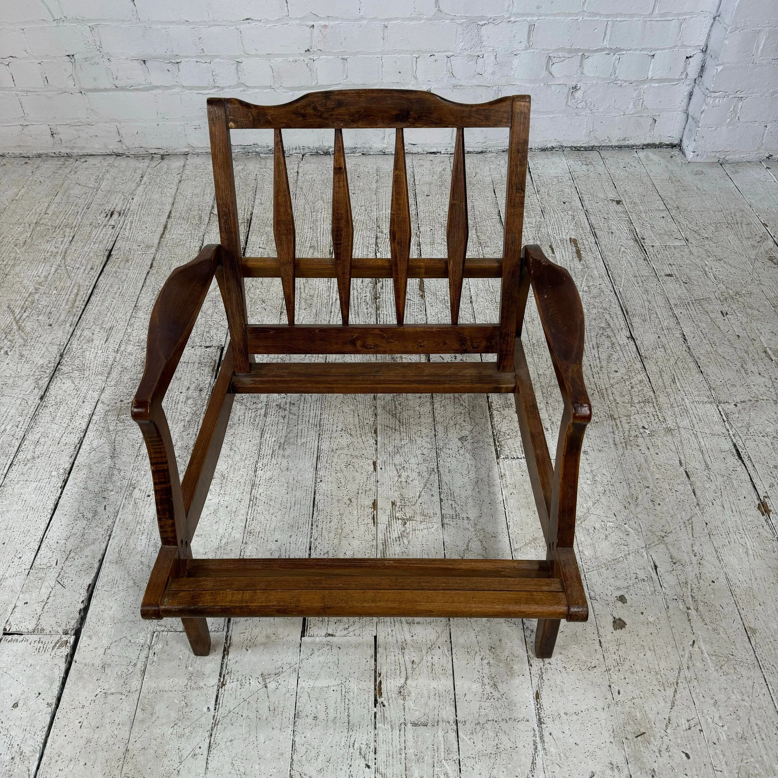 This example retains its original cushion (included, though worn) and we can provide a newly made cushion upon request. The chair shows small, age-appropriate signs of wear, including a couple of minor edge marks and a very slight separation on one bar, both clearly shown in photos.